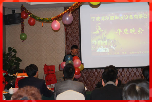 此次年會由公司行政部門精心策劃,聘請了專業(yè)的主持和音控團隊。公司員工精心布置了會場、安排各游戲互動環(huán)節(jié),財務(wù)部購置了豐盛的獎品;使得寧波博爾超聲波設(shè)備有限公司2013年年度晚會舉辦的成功、歡樂、祥和、圓滿!